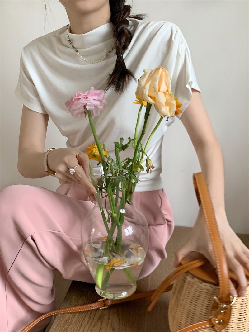 2023夏INS新作★気質 レトロ エレガント スリム シンプル半袖シャツ ブラウス トップス