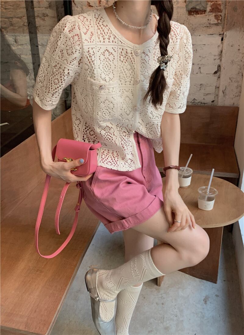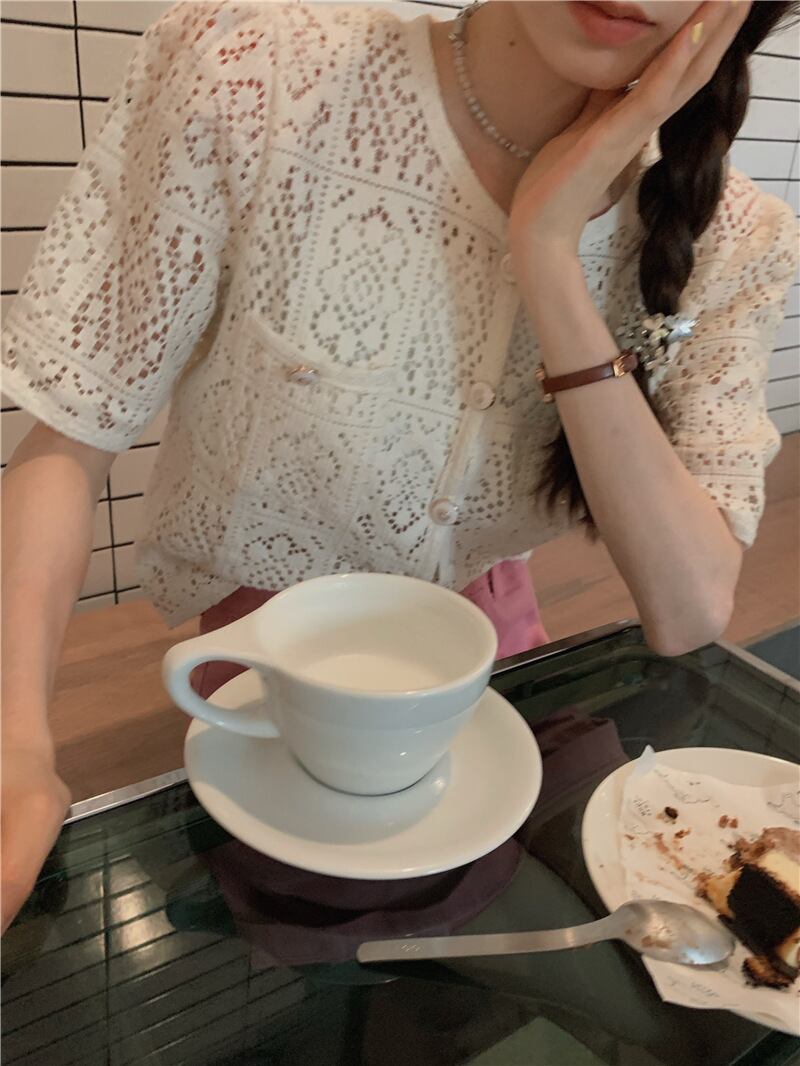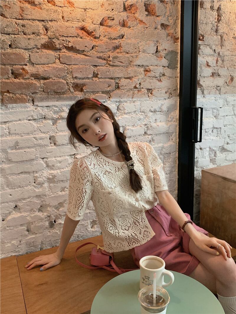 2023夏INS新作★ 韓国風 可愛い レース飾り透かし彫り 飾り ブラウス 優しい トップス シャツ
