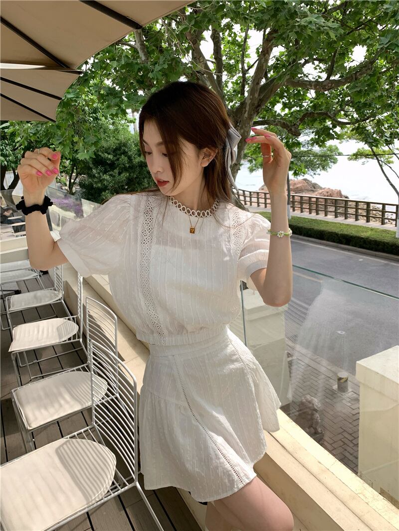 2023夏INS新作★気質 着痩せ シャツ+ショートスカート セット OLファッション韓国系