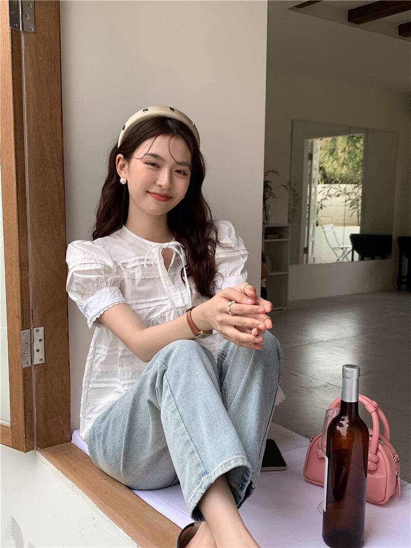 2023夏INS新作★可愛い パフスリーブ 韓国風 カジュアル系 シャツ ブラウス トップス 全2色