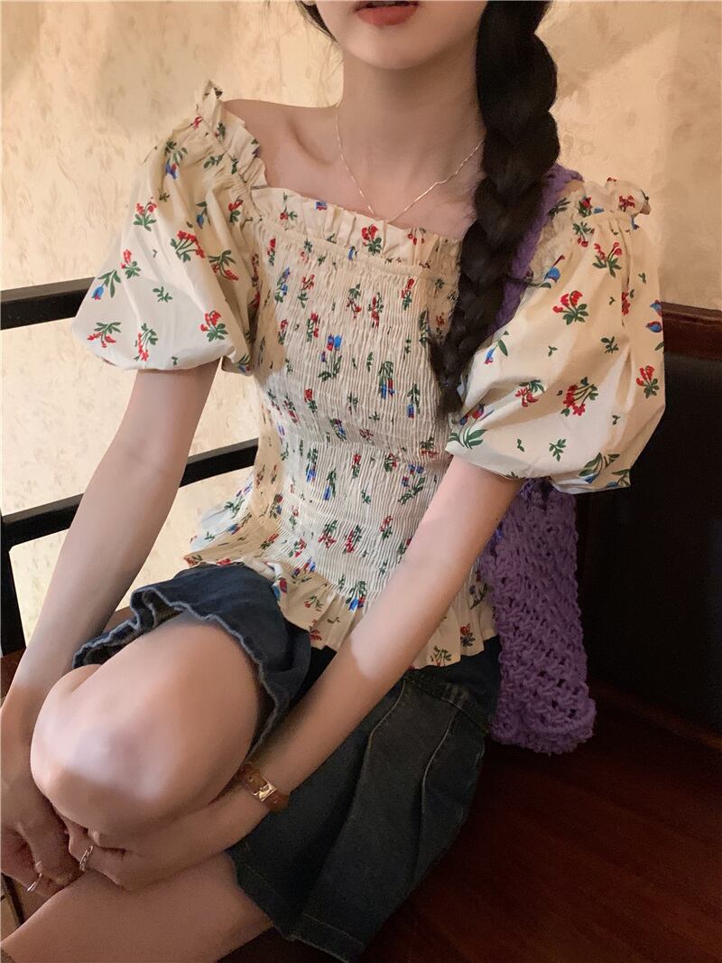 2023夏INS新作★可愛い 花柄プリント パフスリーブ 優しい トップス シャツ ブラウス