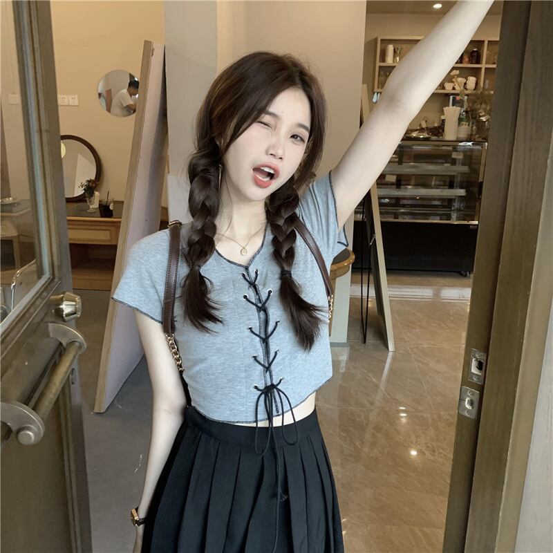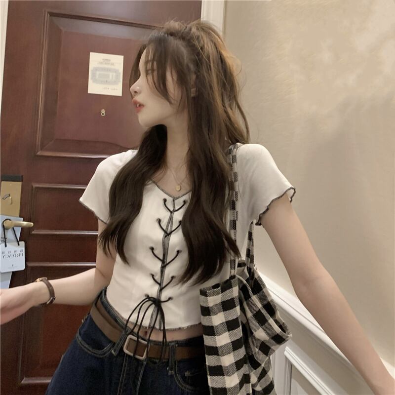 2023夏INS新作★韓国風 気質 着痩せ カジュアル Tシャツ スリム トップス ブラウス