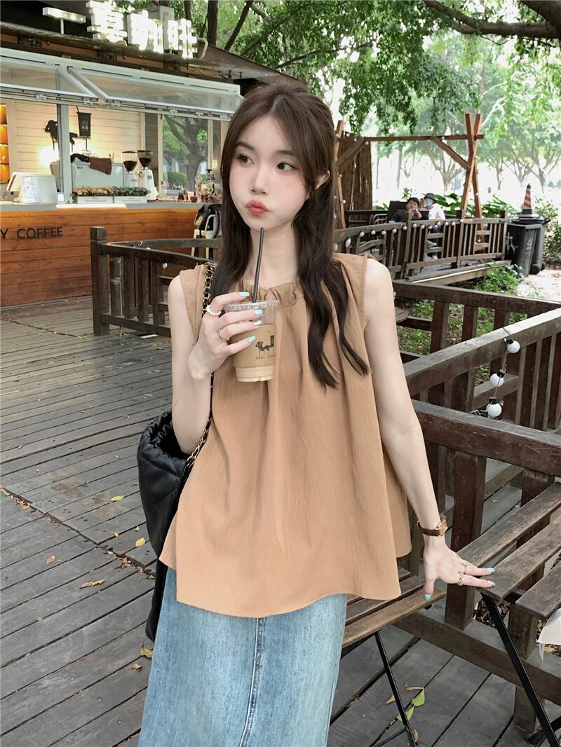 2023夏INS新作★韓国風 カジュアル系 袖なし トップス シャツ ブラウス 優しい