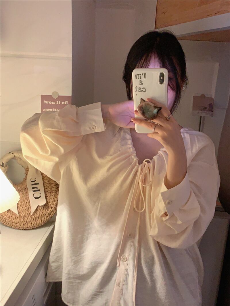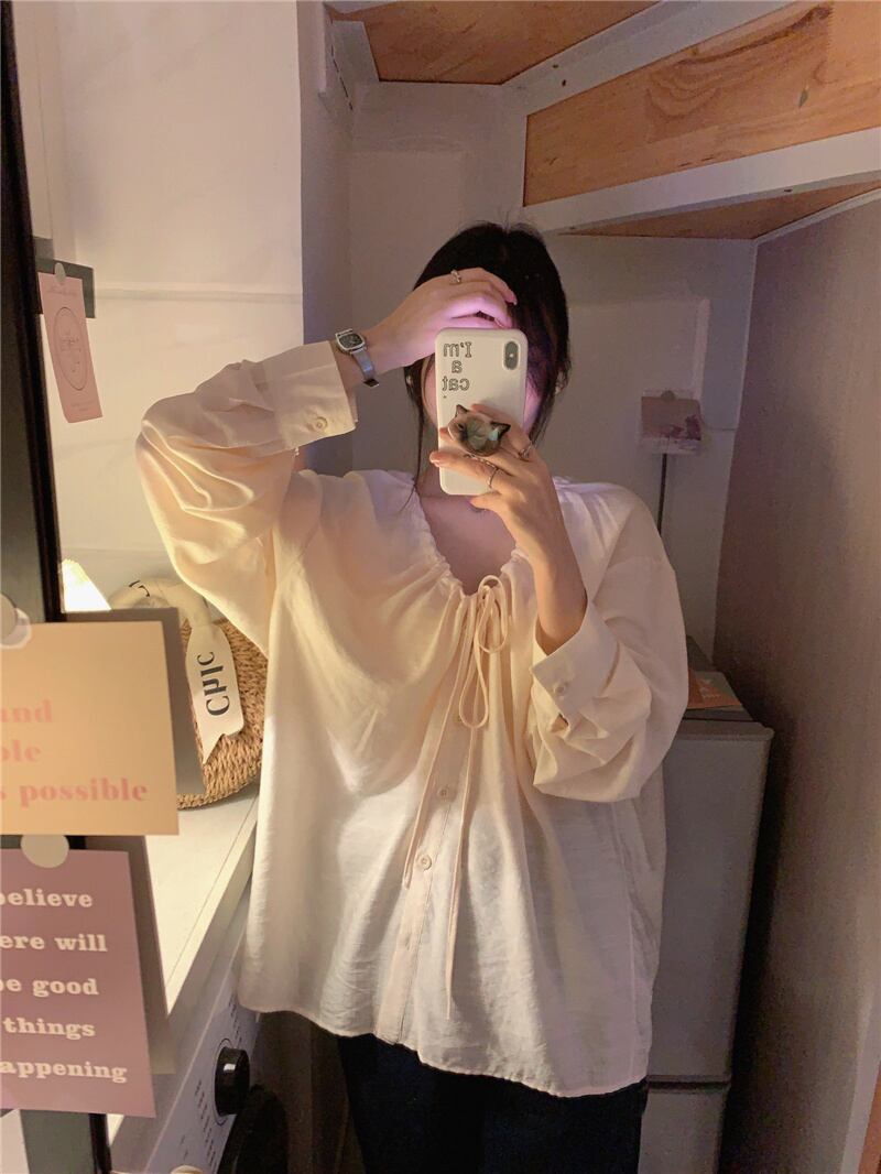 2023夏INS新作★トレンド系 Vネック 気質 着痩せ トップス シャツ ブラウス