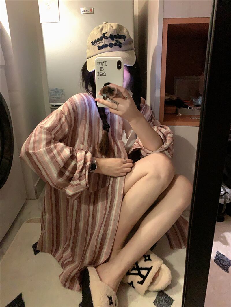 2023夏INS新作★韓国風 カジュアル系 ストライプ柄 シャツ ブラウス トップス 全2色