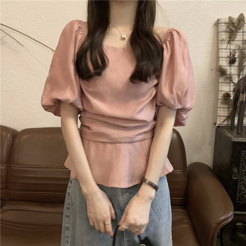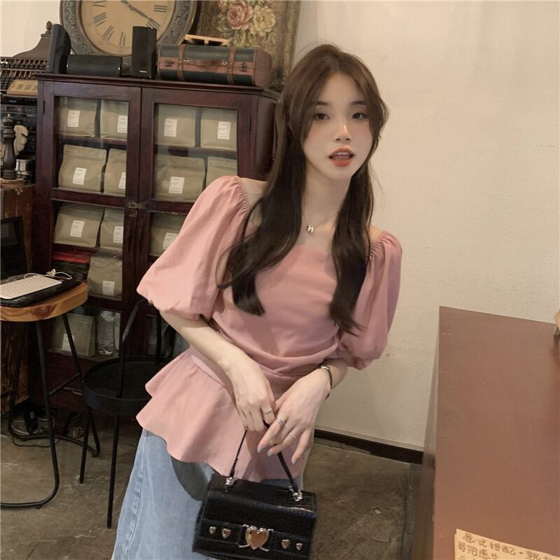 2023夏INS新作★ins超人気 全2色 シンプル半袖シャツ ボートネック 通勤 韓国系 トップス