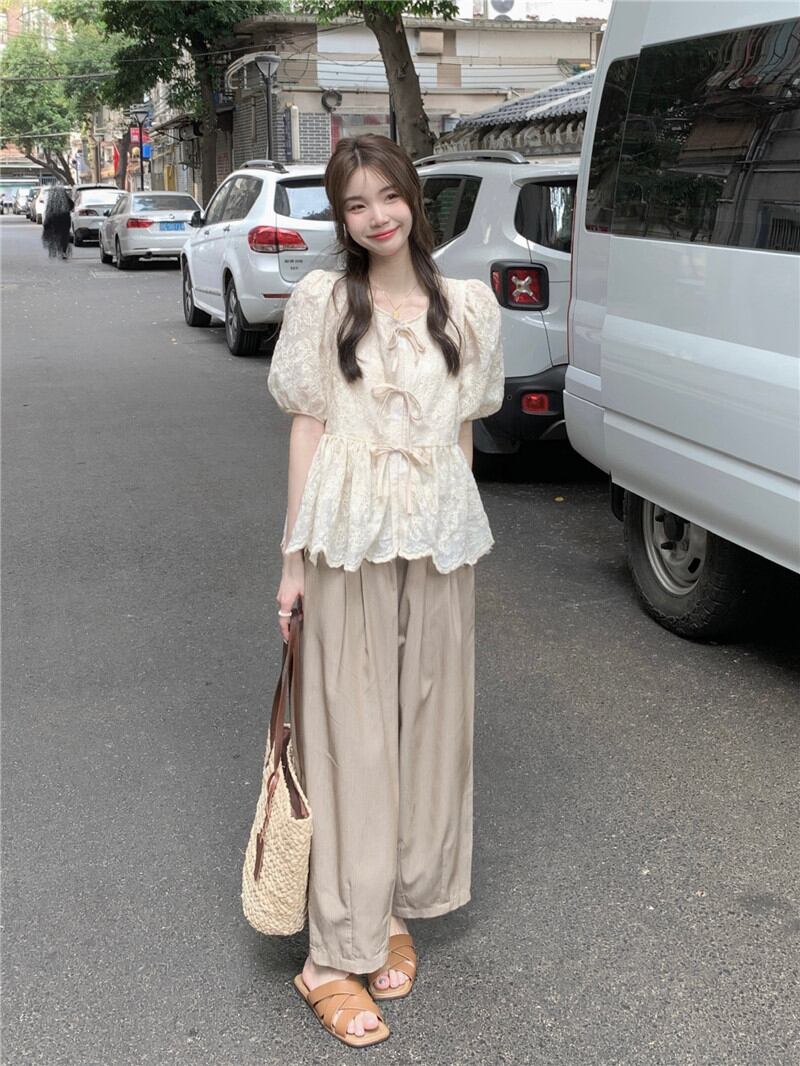 2023夏INS新作★ins超人気 超気質 優しい カットワーク Tシャツ+チノバンツ セットアップ