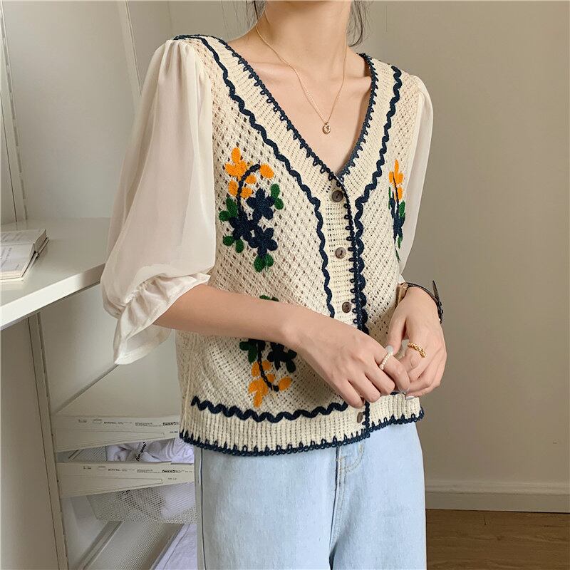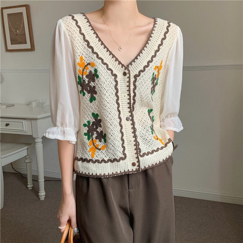 2023春INS新作★ins超人気 レトロ おしゃれ 刺繍 カーディガン