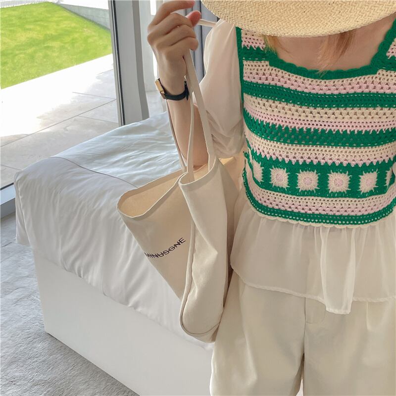 2023春INS新作★ins超人気 韓国系 偽2枚 ニット プルオーバー 短袖シャツ