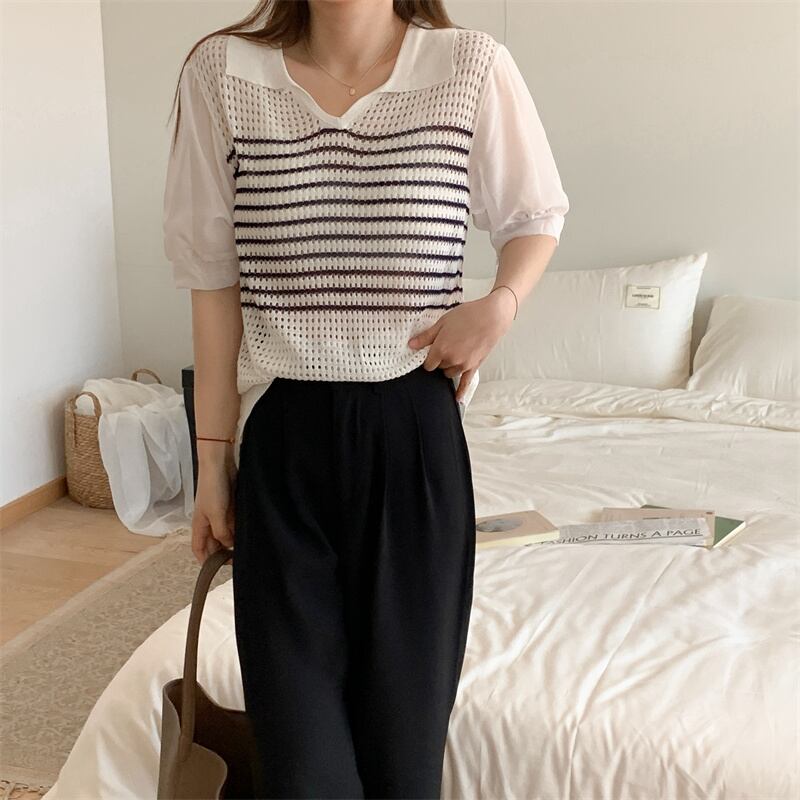 2023春INS新作★ins超人気 韓国系 デザイン性抜群 ニット プルオーバー 短袖シャツ