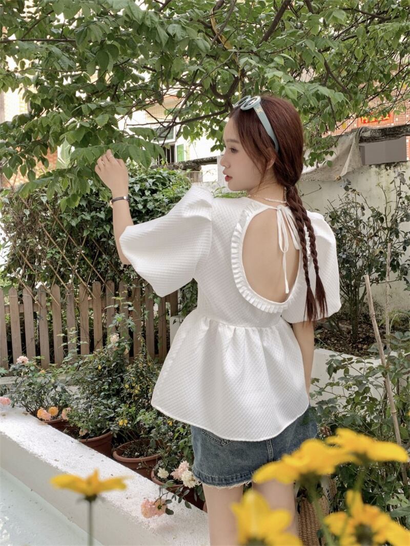2023春INS新作★ins超人気 韓国系 デザイン性抜群 透かし彫り パフスリーブ シャツ/ブラウス