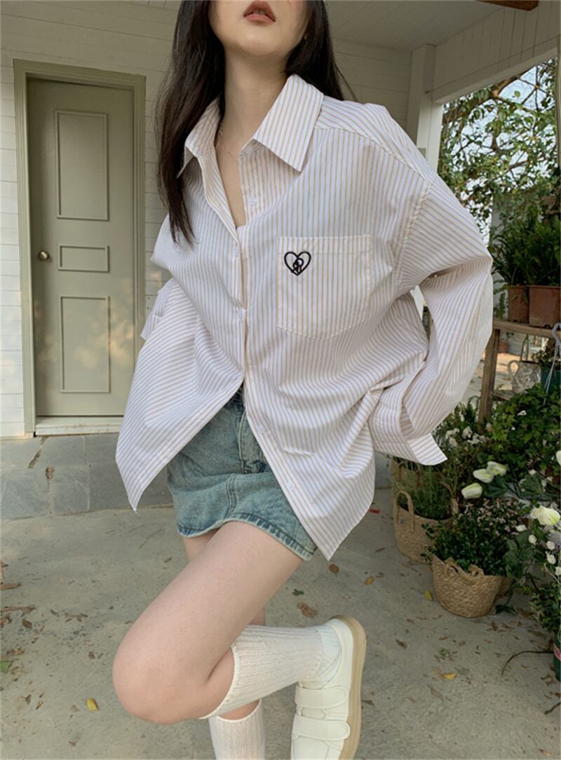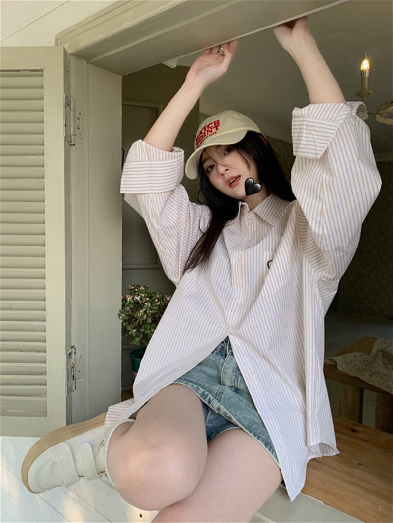 2023春INS新作★ins超人気 レトロ おしゃれ ストライプ柄 シングルブレスト シャツ/ブラウス