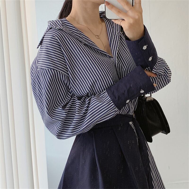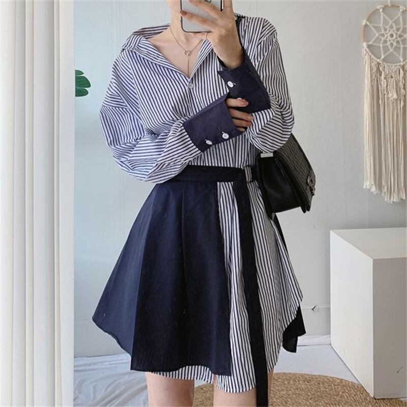 2023春INS新作★ins超人気 韓国系 デザイン性抜群 ストライプ柄 セットアップ ワンピース