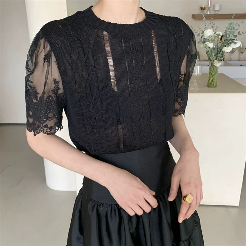 2023春INS新作★ins超人気 韓国系 デザイン性抜群 レース飾り ニット シャツ