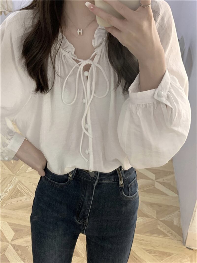 2023春INS新作★ins超人気 韓国系 デザイン性抜群 ランタンスリーブ ブラウス/シャツ