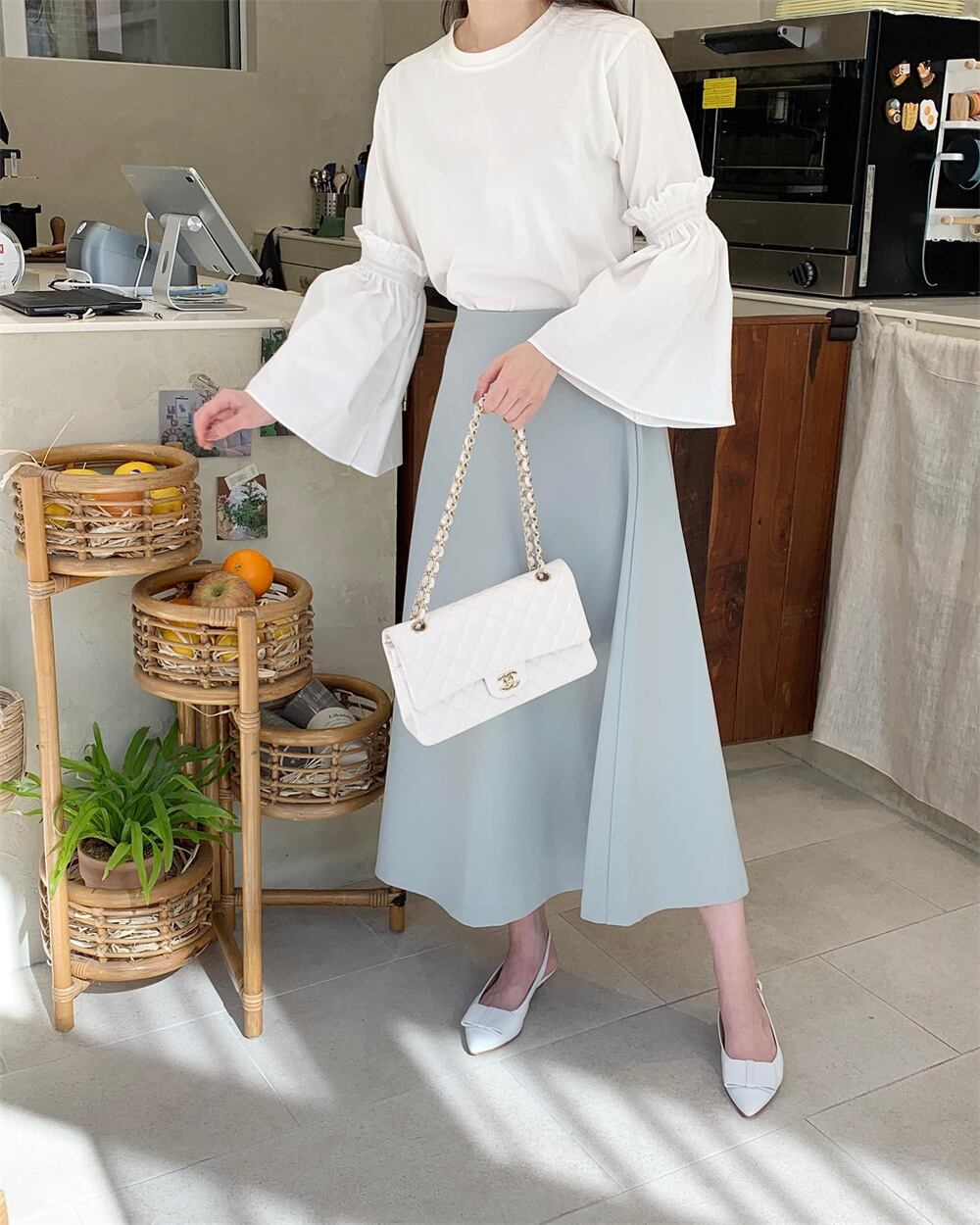 2023春INS★超気質 上品さたっぷり エレガント シャツ セミロングスカート