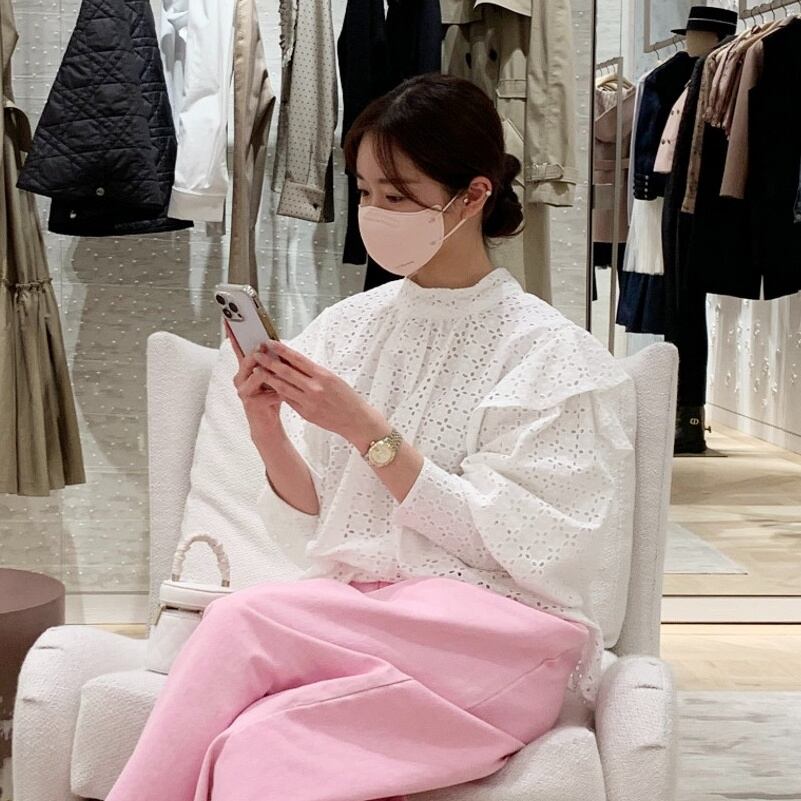 2023春INS★レイジー風 デザイン感 パフスリーブ 透かし彫り シャツ/ブラウス