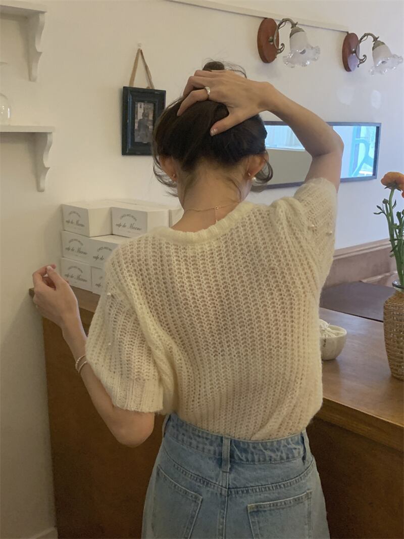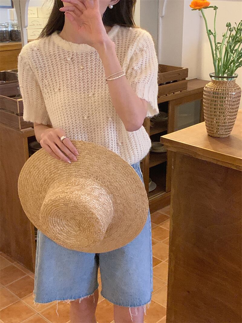 2023春INS★カジュアル 気質 透かし彫り 長袖 ニット プルオーバー
