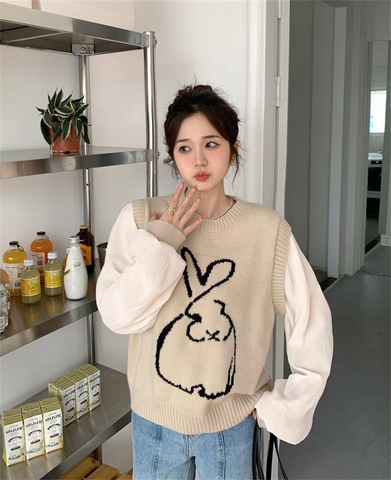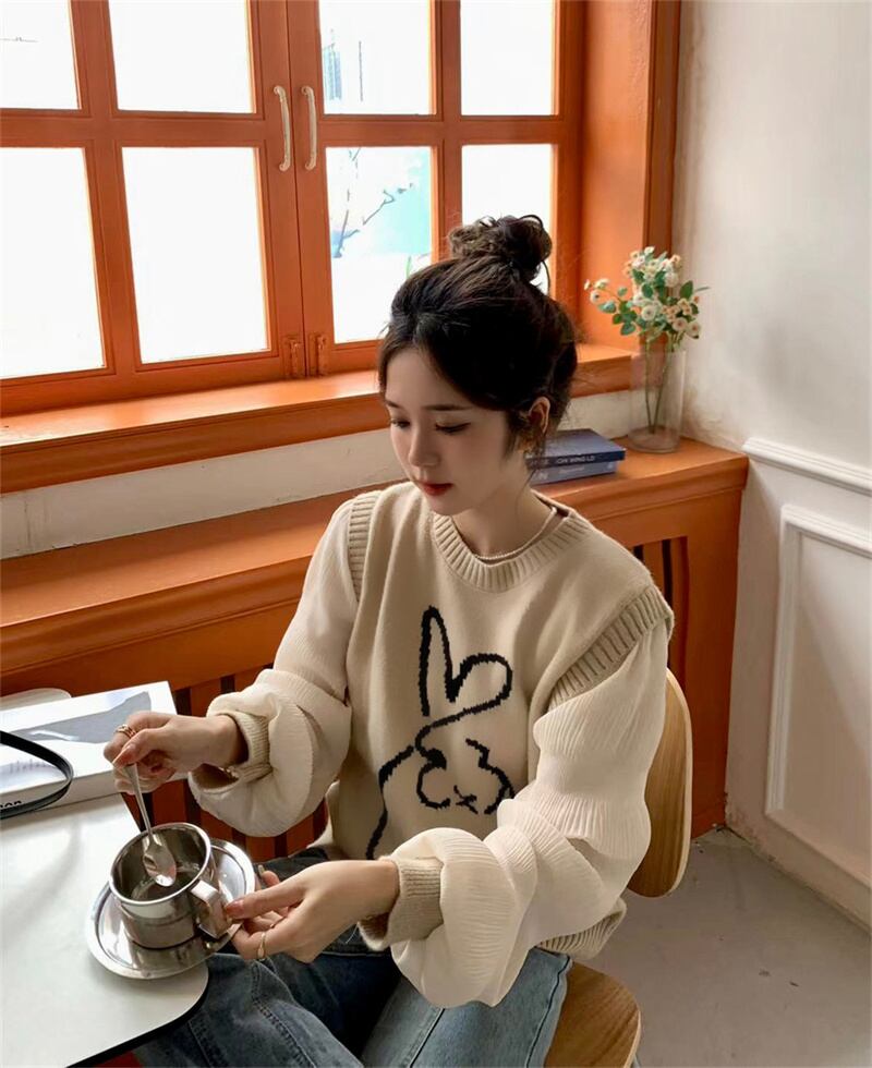 2023春INS★カジュアル 気質 偽2枚 長袖 ニット シャツ/ブラウス