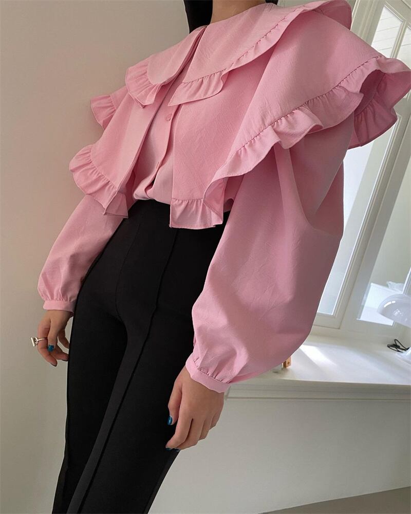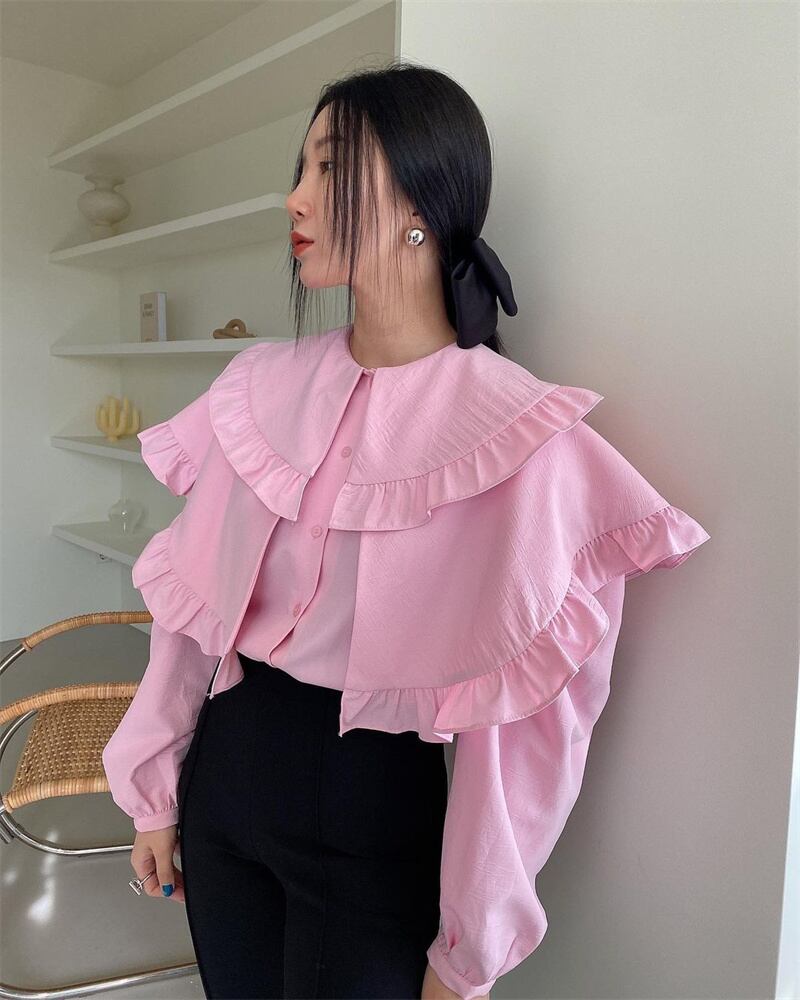 2023春INS★カジュアル 気質 可愛い 折り襟 長袖 シャツ/ブラウス