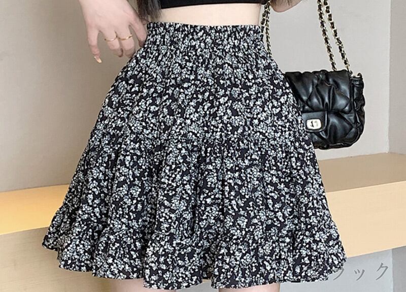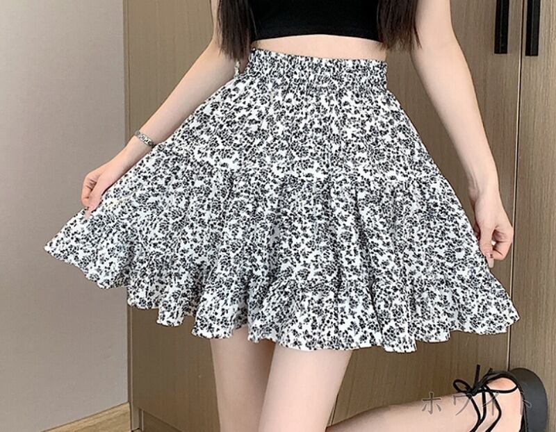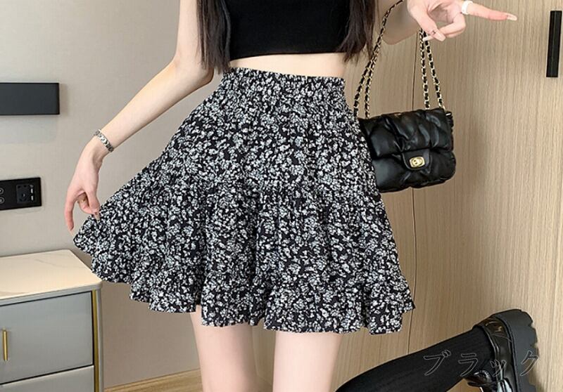 全2色 キュロット フリル バイカラー スリム 着痩せ 花柄 カジュアル