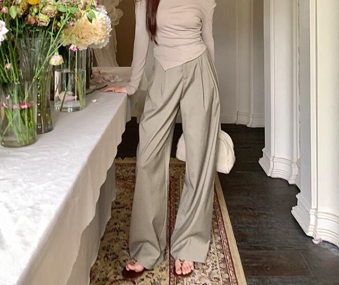 全2色 パンツ 切り替え 体型カバー 着痩せ シンプル カジュアル