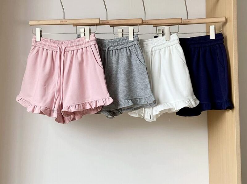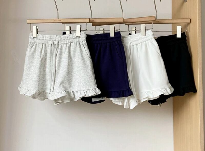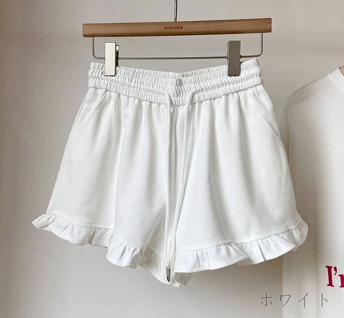 全6色 ショートパンツ ショーパン フリル 切り替え 体型カバー 着痩せ シンプル カジュアル