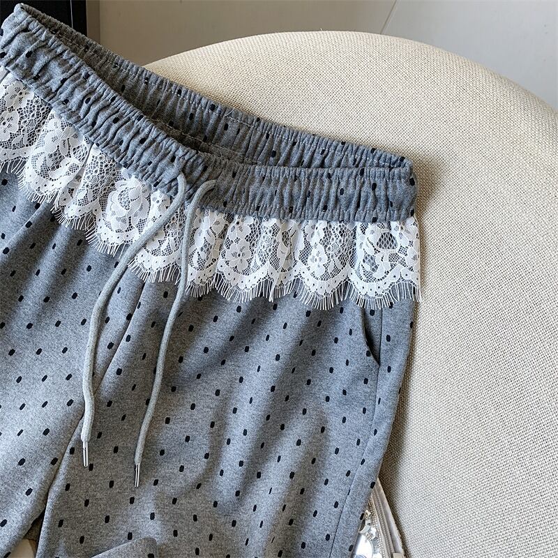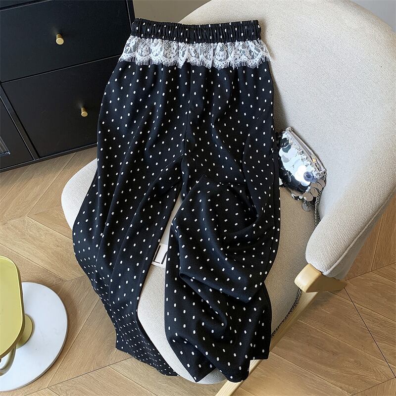 全2色 パンツ 切り替え バイカラー 体型カバー 着痩せ レース ドット柄 シンプル