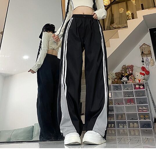 全2色 パンツ 切り替え バイカラー 体型カバー 着痩せ シンプル カジュアル