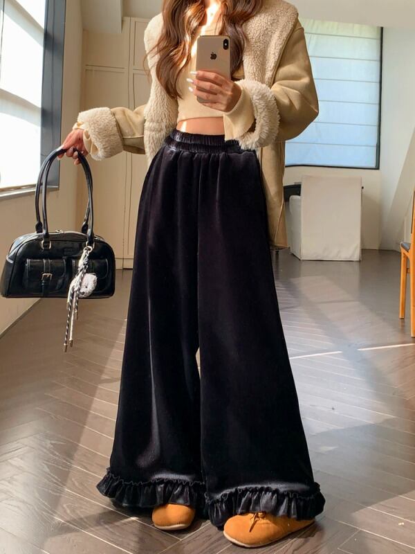 パンツ 切り替え 体型カバー 着痩せ フリル 【大きいサイズあり】