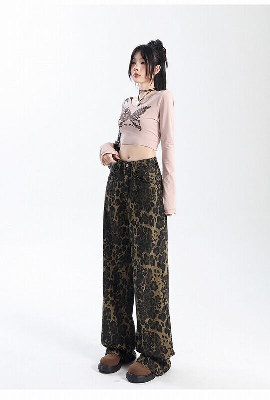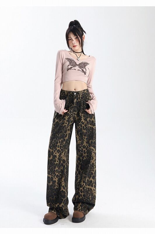 パンツ 切り替え バイカラー 体型カバー 着痩せ レオパード柄 【大きいサイズあり】 カジュアル