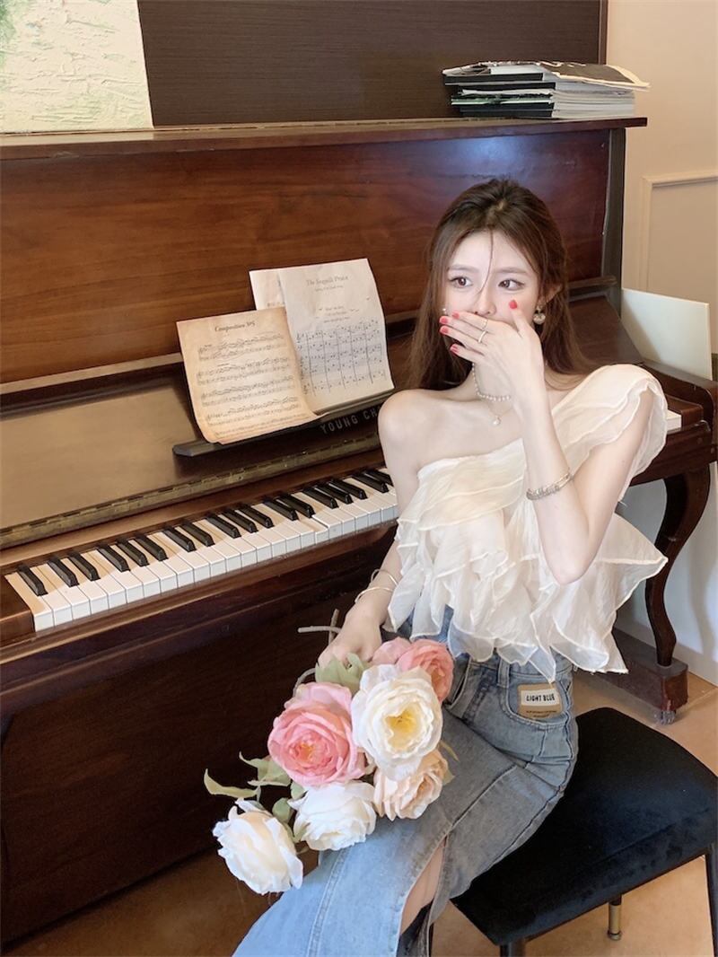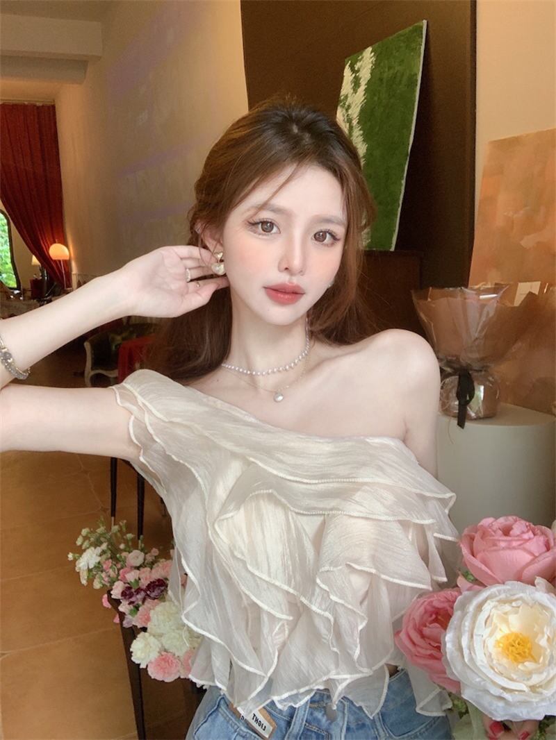 今季マストバイ夏新作 気質 レトロ おしゃれ カジュアル ワンショルダー シャツ/ブラウス