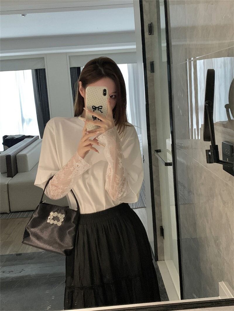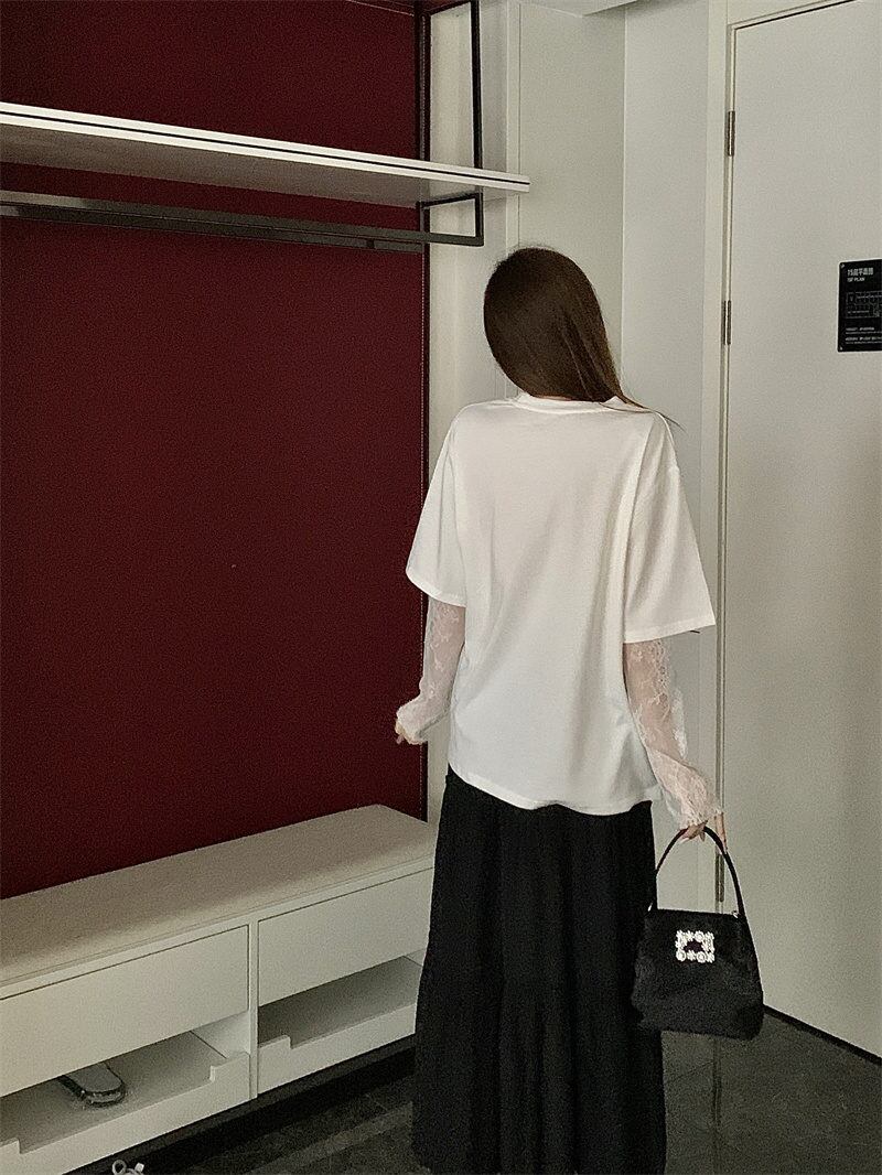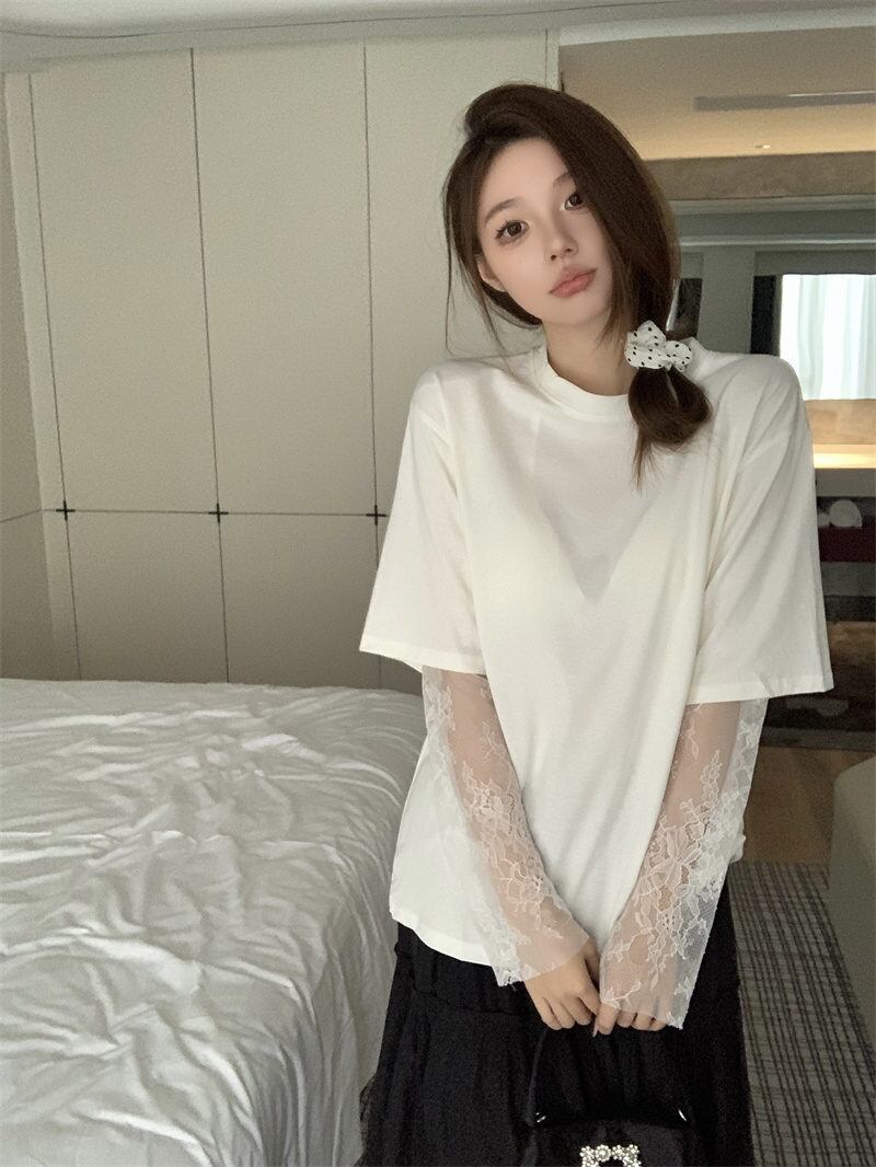 今季マストバイ 気質 レトロ おしゃれ カジュアル トップス Tシャツ レース袖付き