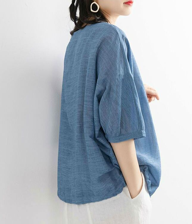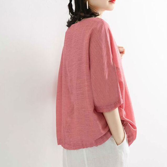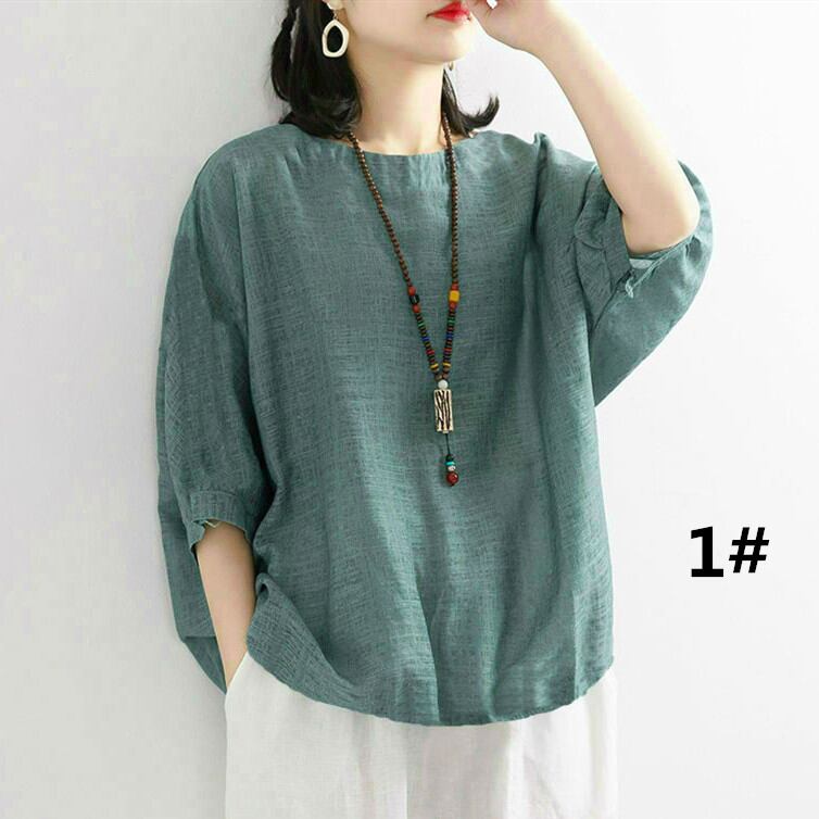 ブラウス シャツ レディース トップス 2026年新作 綿麻シャツ ラウンドネック レトロ tシャツ カジュアル