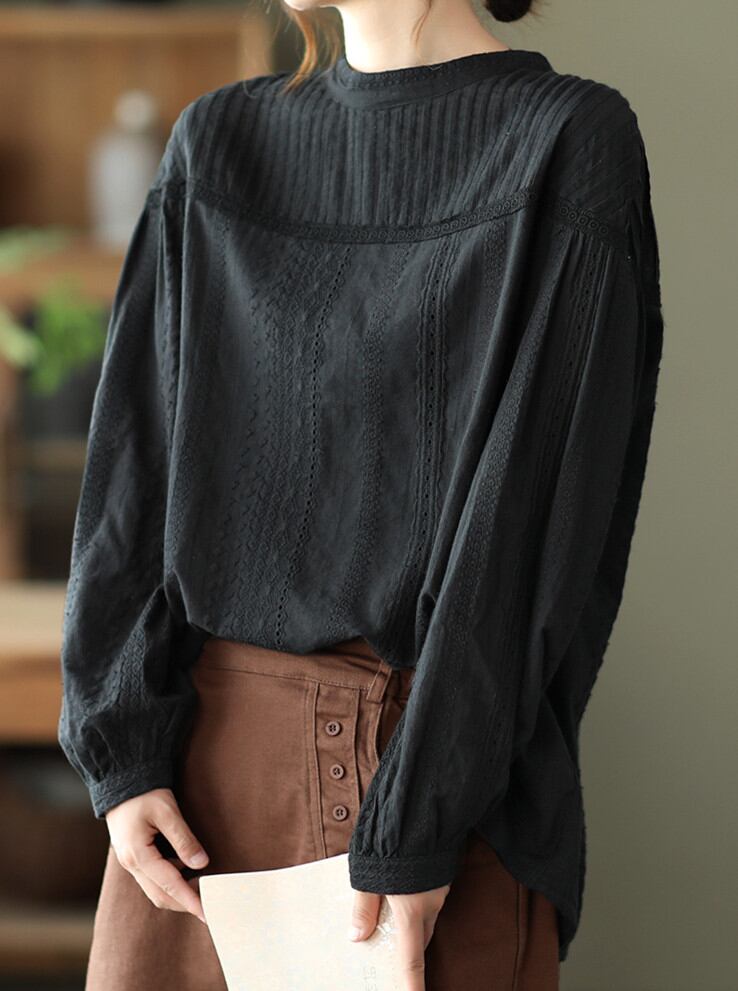 ブラウス 長袖 刺繍ブラウス トップス シャツ 森ガール カジュアル 着痩せ ゆったり