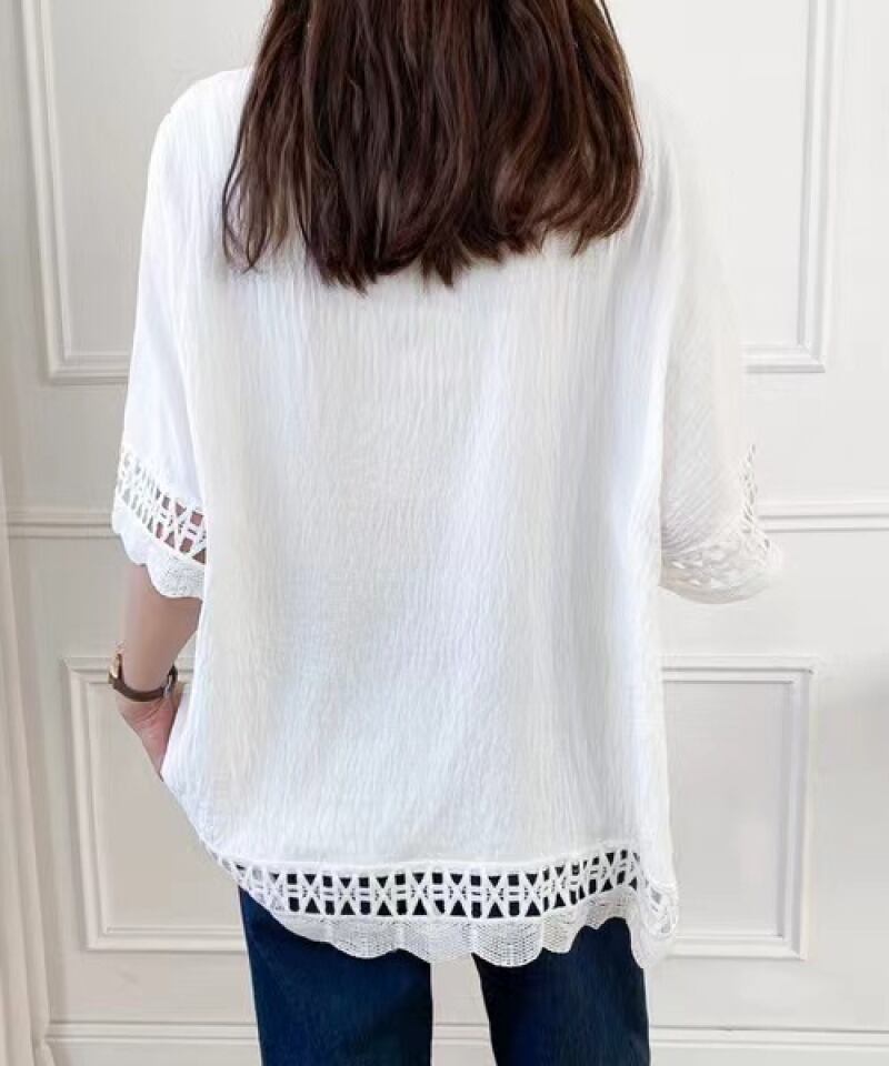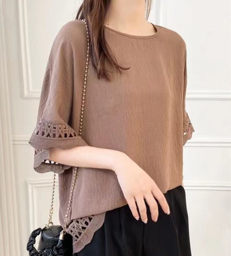 2026年新作 ブラウス シャツ トップス 5分袖 ラウンドネック レディース 気質 着回し