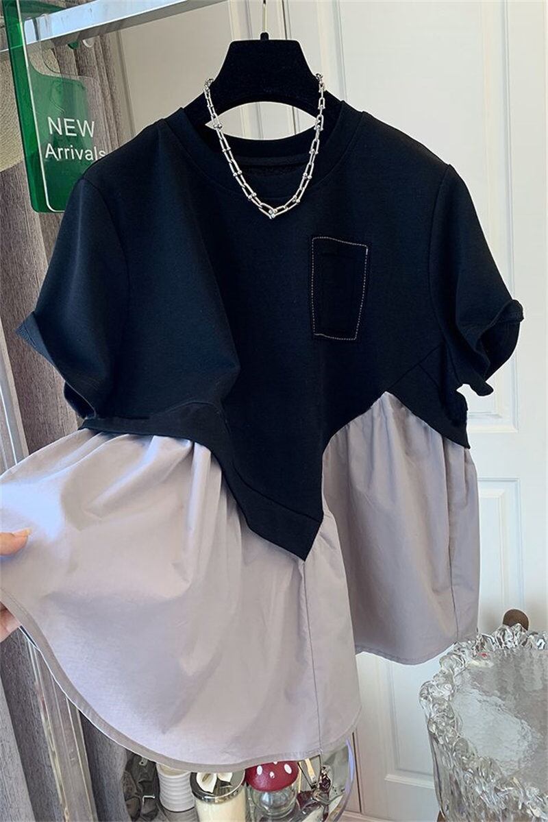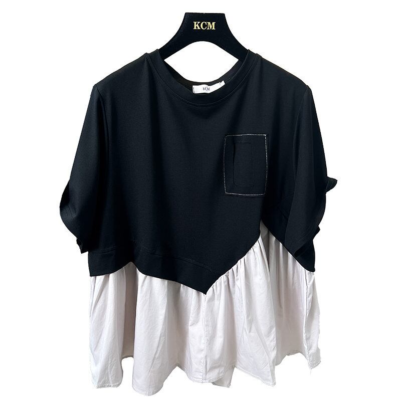 大流行新作 気質 レトロ おしゃれ カジュアル トップス 配色 Tシャツ