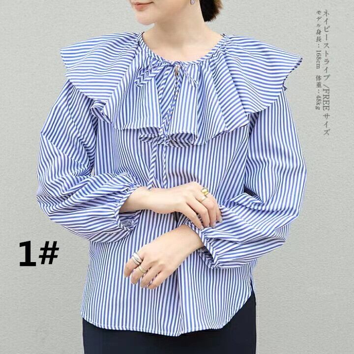 人気新作 ブラウス ストライプ トップス レディース フレア Sweet 気質 ランタンスリープ