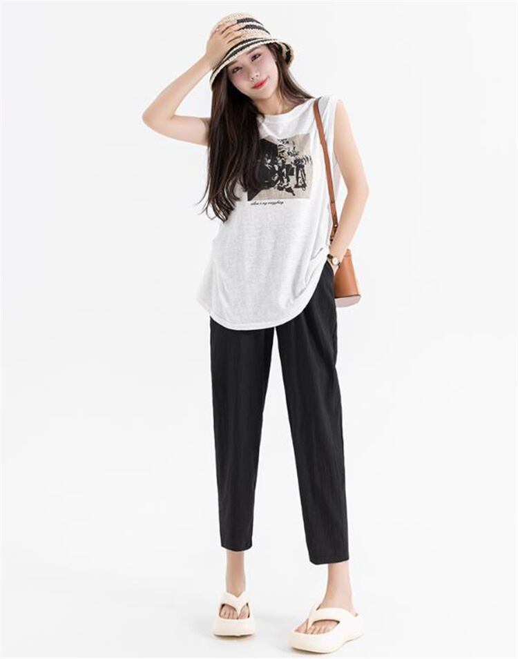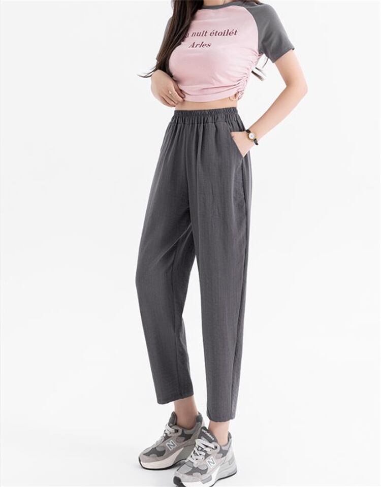 待望の再入荷です 綿麻ズボンハイウエスト スリム カジュアルズボン 九分丈パンツ ロングパンツ