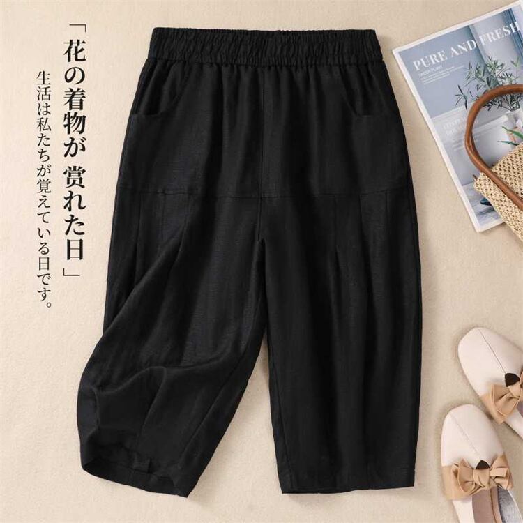 見なきゃ損する ショートパンツ ゆったりする 灯籠ズボン 綿麻 五分ズボン 伸縮性のあるウエスト
