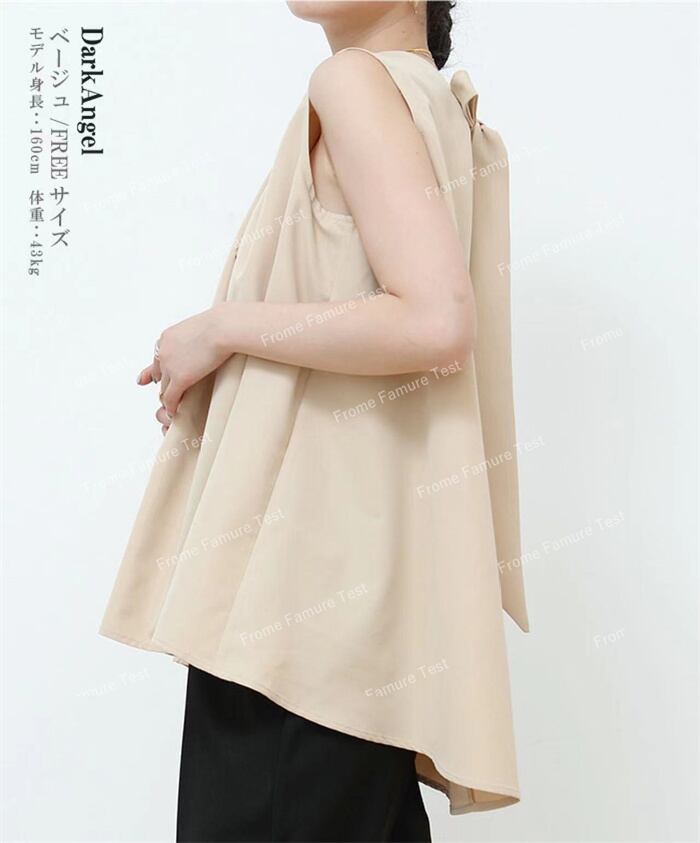 レディース夏カットソー / シンプルノースリーブ トップスシャツブラウスTシャツ/上品通勤 ゆったり蝶結び
