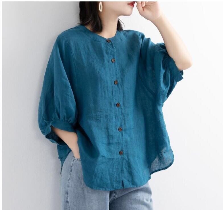韓国ファッション 棉麻Tシャツ ブラウス レディース シャツ 長袖Tシャツゆったり 通勤