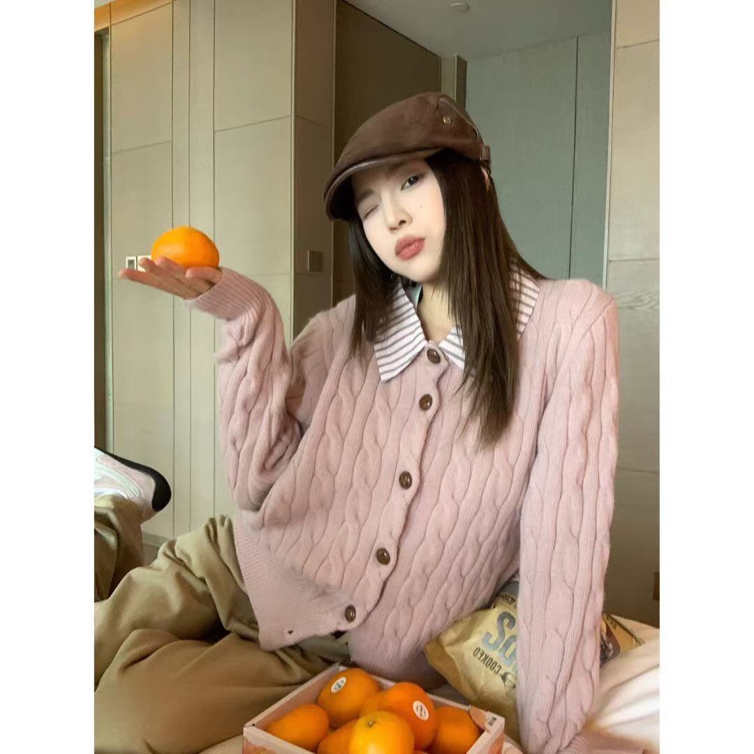 2025年INS 秋冬新作 気質 おしゃれ 可愛い スウィート シャツカラー ニット カーディガン
