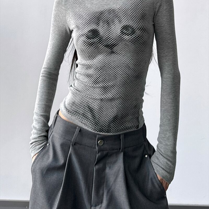 長袖 Tシャツ レディース 英字 ロゴ プリント スリム タイト フィット アメカジ インナー 重ね着