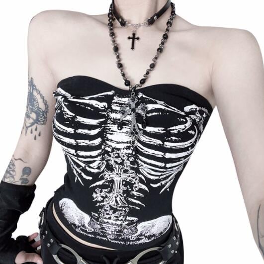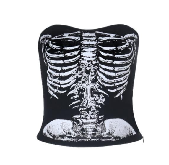 秋冬トップス タンクトップ ベスト ベアトップ 暗黒系 髑髏