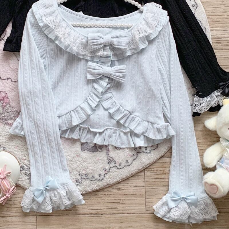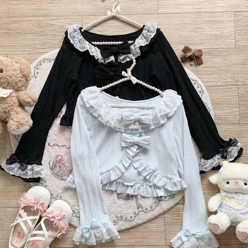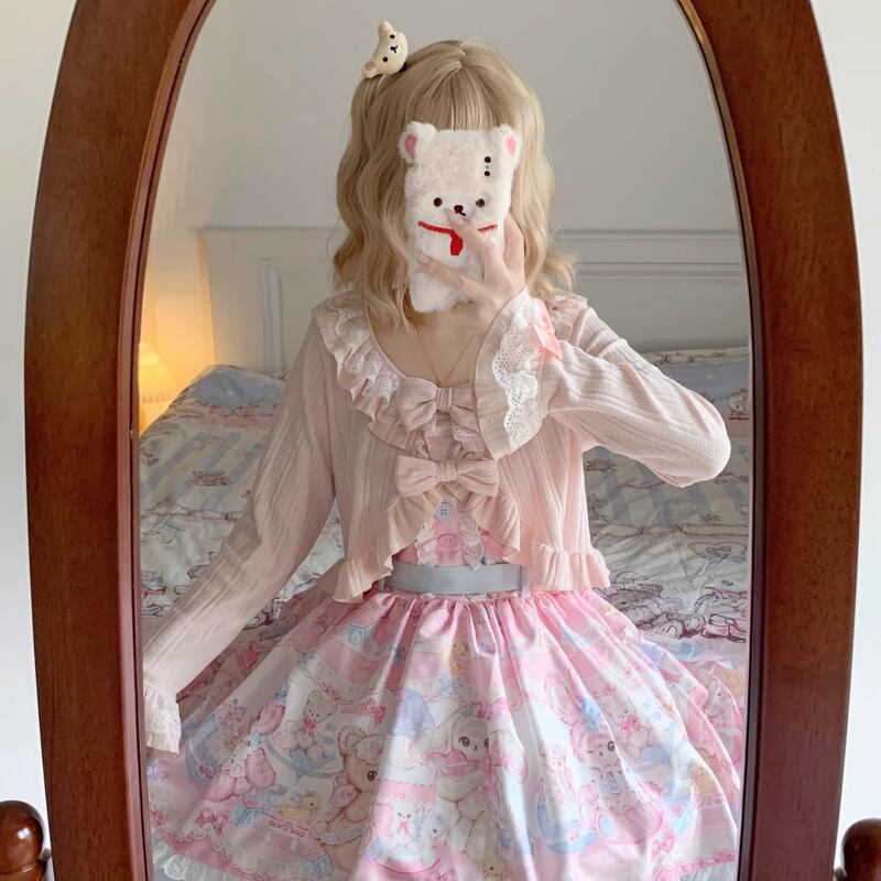 カーディガン レディース ニット ボレロ ショート丈 リボン フリル ロリータ 羽織り 可愛い