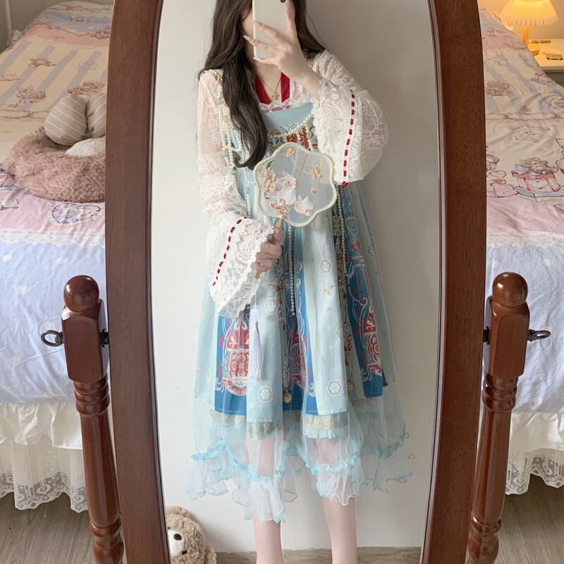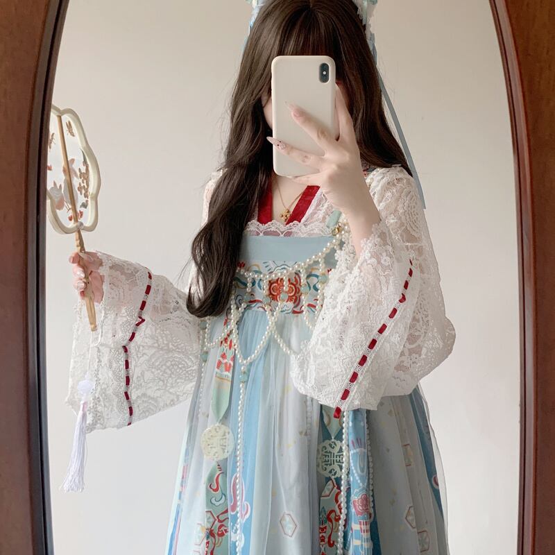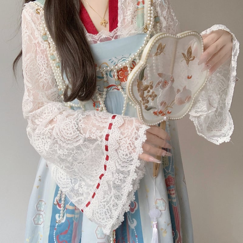 シースルー トップス レディース 長袖 レース メッシュ 中華ロリータ 漢服 インナー 透け感 重ね着