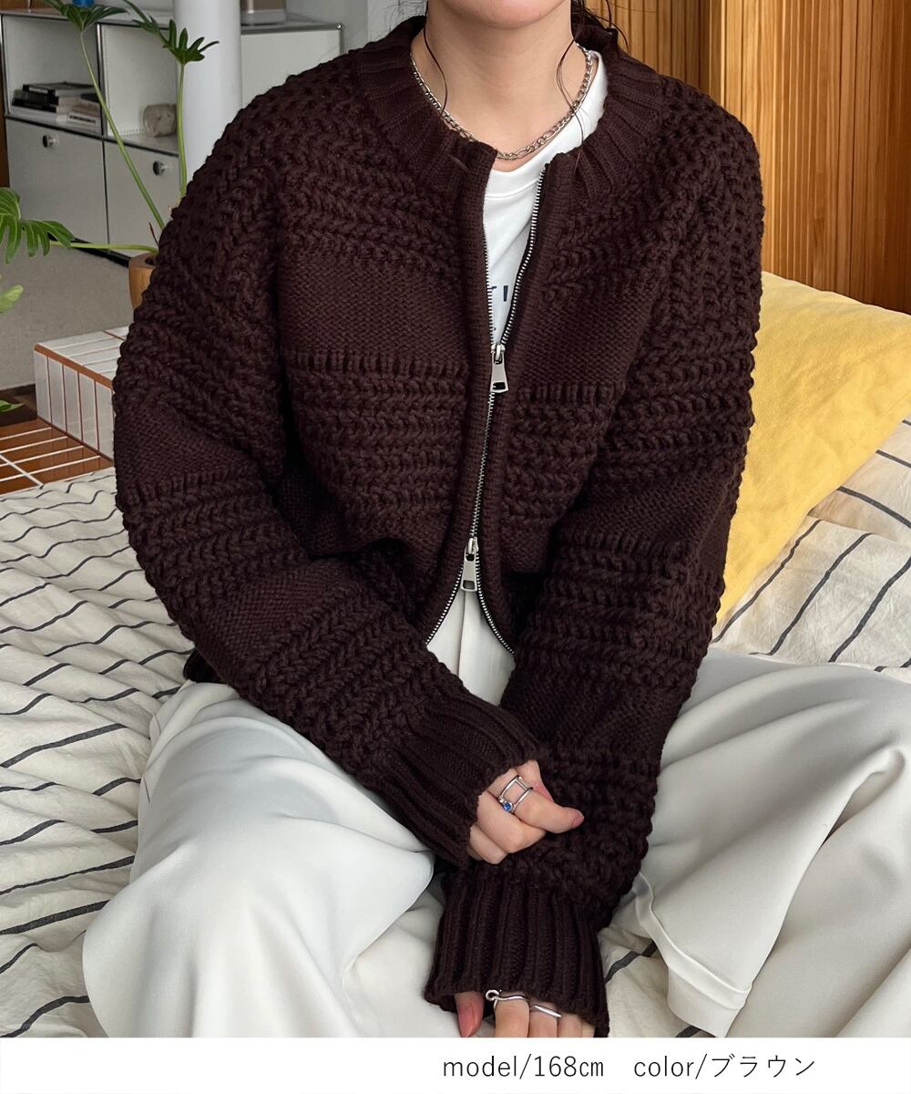 【2025新作商品♪】鹿の子編みフロントジップカーディガン
