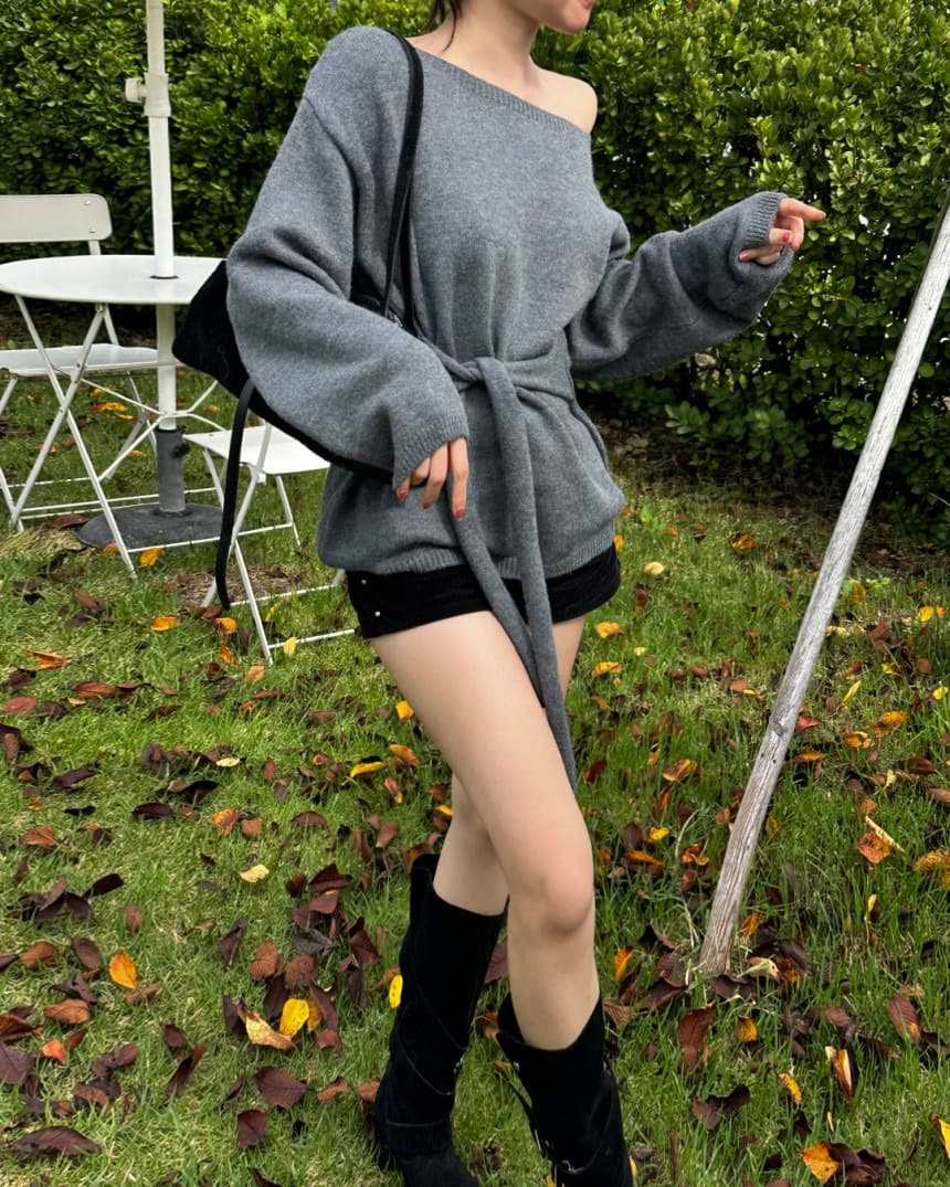 2025年INS 秋冬新作 気質 おしゃれ 高級感 リボン締めウエスト絞り スリム効果ニット セーター