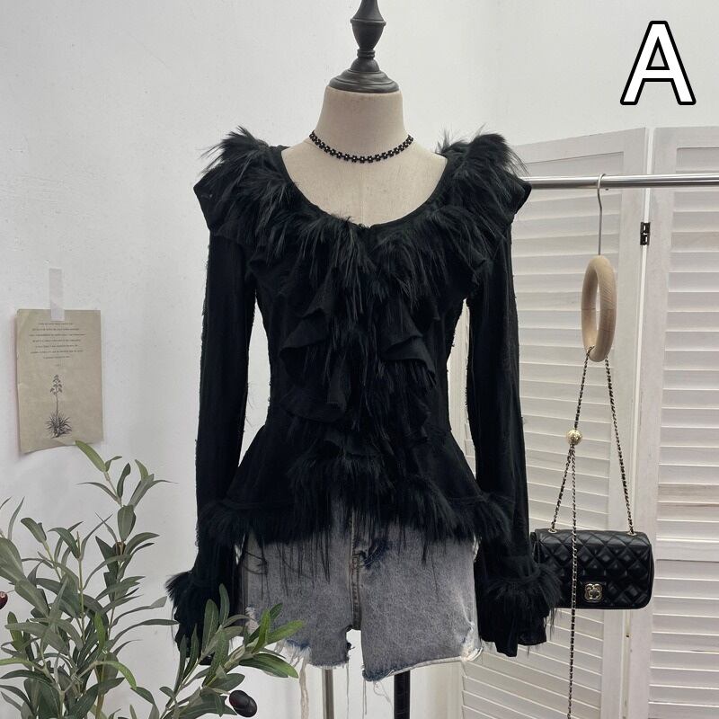 カーディガン レディース ニット ダメージ加工 フリンジ 不規則 フェイクファー 個性的 パンク